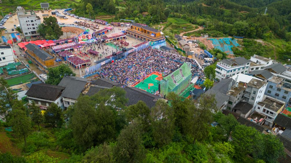 今年7月20日,一年一度的臺盤村“六月六”吃新節(jié)籃球賽在臺盤村“村BA”球場完賽。賽事設置了公開組、村村組、中年組、少年組和女子組等組別,來自全國各地的195支球隊,在10天的賽期內,給當地群眾和游客帶來了數百場精彩比賽。