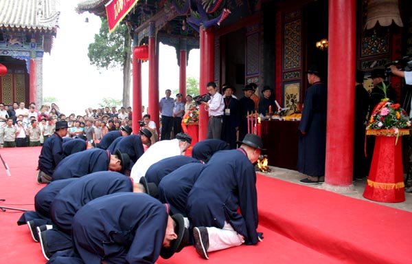2006年7月2日,位于麥積區(qū)渭南鎮(zhèn)的卦臺(tái)山上彩旗獵獵,禮樂(lè)聲聲,翠柏掩映,香煙繚繞,2006(丙戌)年民間祭祀人文始祖太昊伏羲大典在此拉開序幕。