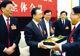 出席十一屆全國人大一次會(huì)議的我省女代表審議政府工作報(bào)告。本報(bào)記者 呂建榮 攝