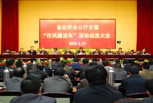 省政府辦公廳2月27日下午召開會議,傳達學(xué)習(xí)省直機關(guān)“作風(fēng)建設(shè)年”活動動員大會精神,動員部署“作風(fēng)建設(shè)年”活動。省委常委、副省長劉永富出席會議并講話。
