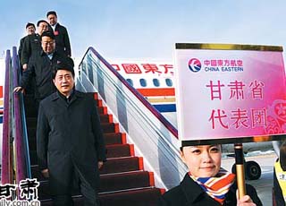 (3月7日,省城蘭州,天水在線向甘肅省農(nóng)村信用社聯(lián)合社黨委書記、理事長雷志強(qiáng)贈閱由中共天水市委書記、市人大常委會主任張景輝作序,天水在線編制的《天水2009》新聞畫冊。)