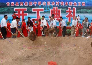 2009年6月9日,在磐安鎮(zhèn)十甲坪村,甘谷縣西北部農(nóng)村飲水安全工程正式開(kāi)工,15萬(wàn)群眾將徹底決別飲用高氟水、苦咸水的日子。