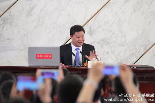 【傅瑩“輕”語錄】①今天早晨我拉開窗簾,看到藍(lán)天白云,真是心里頭充滿了感動 ②新《環(huán)保法》是有牙齒的 ③不靠艦炮開路 ④《奔跑吧兄弟》,一起往前走,還是兄弟⑤多念彼此的好 ⑥總有人昧良心賺黑錢令人發(fā)指 ⑦今年你很客氣,你沒有問我們?yōu)槭裁丛黾榆娰M(fèi)。(王敬 馮永斌 攝)