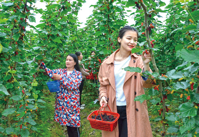 ▲江西省樟樹市愛農(nóng)湖生態(tài)主題樂園內(nèi),市民在體驗(yàn)采摘桑葚之樂。圖片由受訪者提供