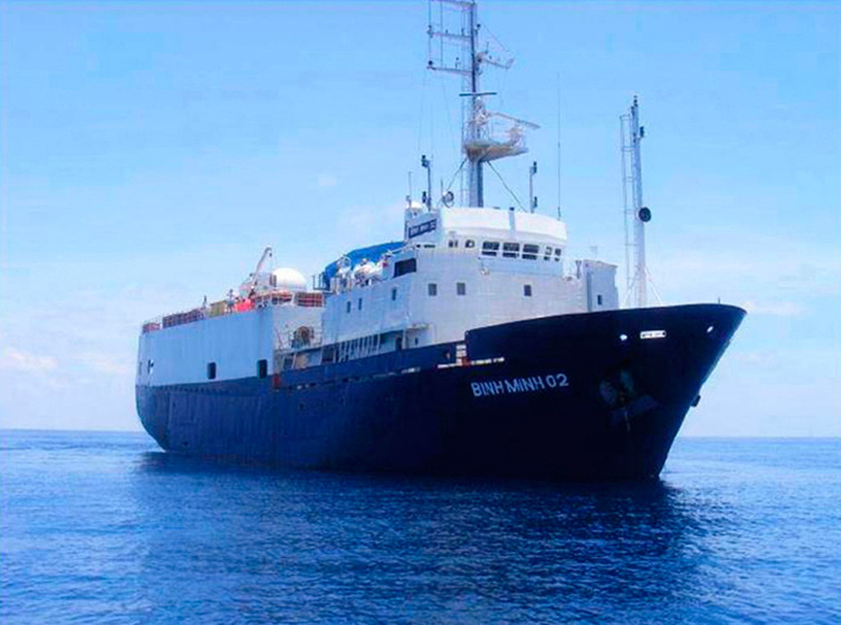 5月29日,越南國家石油天然氣集團(tuán)公布的“平明二號”石油勘探船的照片。越南一名官員27日稱,中國巡邏艦在南中國海驅(qū)逐越南一艘石油勘探船,損毀后者的設(shè)備,并警告稱該船侵犯了中國領(lǐng)土主權(quán)。