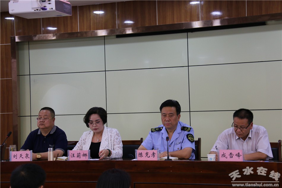 會議由市食藥監(jiān)局黨委委員、紀委書記茍東波主持。市食藥監(jiān)局黨委委員、副局長吳曉堂、王維云分別宣讀了《2016年天水市食品藥品監(jiān)管系統(tǒng)效能風暴行動民主評議政風行風和機關(guān)作風實施方案》和《天水市食品藥品監(jiān)督管理局關(guān)于聘請2016年效能風暴行動民主評議政風行風和機關(guān)作風效能監(jiān)督員(民評代表)的通知》。