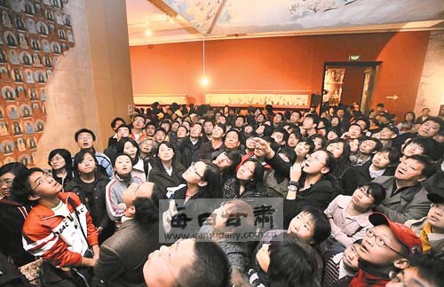 敦煌藝術(shù)展覽從上世紀(jì)40年代、建國(guó)以來(lái)到現(xiàn)在,此次是規(guī)模最大的一次,展覽方式、設(shè)計(jì)理念也很新,對(duì)展覽的投入也很高,美術(shù)館的外圍全部仿莫高窟的外觀裝飾,花了100多萬(wàn)元,等于做了一個(gè)小建筑放在那兒,內(nèi)部洞窟模型,好像將整個(gè)洞窟放在那兒,展覽方式普遍反映非常好。門票價(jià)格也合適,才20元一張,現(xiàn)在聽個(gè)音樂會(huì)常常要好幾千元。這些措施都非常好,不是單純從商業(yè)角度,經(jīng)濟(jì)利益來(lái)考慮。文化的東西,更重要的是教化功能,讓人們了解敦煌,通過敦煌讓人們認(rèn)識(shí)中國(guó)古代的文化、藝術(shù),這種作用是不能用金錢來(lái)衡量的,觀眾中有很多老人、小孩,普通觀眾,他們不一定全能看懂,但其中有非常好的愛國(guó)主義教育功能,過去我們的教育不太得當(dāng),像用這樣一個(gè)活生生的,給人以視覺享受和美的震撼的形式就很好,其次是歷史、文化知識(shí)的傳播,正是因?yàn)榉鸾痰男叛,產(chǎn)生了古代悠久、燦爛的文化。此次觀眾來(lái)自全國(guó)各地的都有,從規(guī)模、效果看,都是空前的,這種展覽的盛況也是美術(shù)館建館以來(lái)最好的,展覽時(shí)間之長(zhǎng)、規(guī)模之大、人數(shù)之多,前所未有,從中也可看出現(xiàn)在人們?cè)谖镔|(zhì)欲望滿足之后,對(duì)精神文化生活的迫切需要和追求。這是個(gè)可喜的現(xiàn)象。