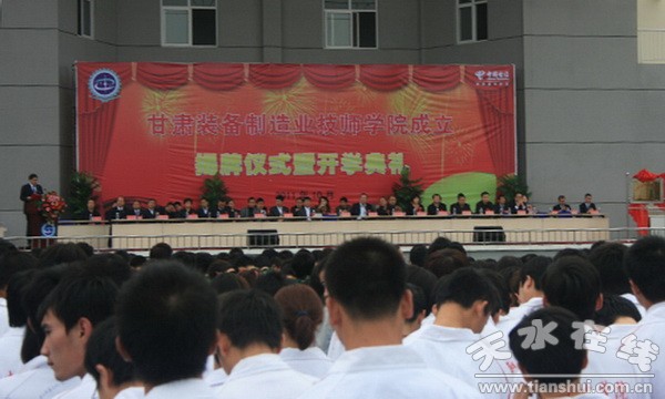 9點30分,儀式在雄壯的國歌聲中拉開序幕。省人力資源和社會保障廳培訓處王麗萍處長宣讀《甘肅省人民政府關(guān)于成立甘肅裝備制造業(yè)技師學院的通知》,省人力資源和社會保障廳副廳長楊俊斌,省工業(yè)和信息化委員會副主任馬蘇平,天水市委常委、副市長郭奇若,黨委書記、院長李宗義共同揭牌。李宗義書記致辭,楊俊斌副廳長、馬蘇平副主任作重要講話。黨委副書記、副院長王芳弟主持儀式,黨委委員、副院長趙彥軍宣讀優(yōu)秀學生表彰決定。省市企事業(yè)單位、兄弟院校嘉賓及全院師生共5000多人參加揭牌儀式。