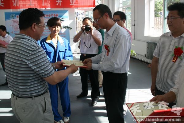 在開業(yè)典禮上,學(xué)院黨委書記朱勇虎,天水華圓集團(tuán)總經(jīng)理段永鋼共同啟動(dòng)了生產(chǎn)設(shè)備,學(xué)院院長蘆維忠為該院聘請的客座教授、兼職教師、專業(yè)實(shí)訓(xùn)指導(dǎo)教師頒發(fā)了證書 ,學(xué)院副院長冉福祥、天水華圓集團(tuán)總顧問任國元分別做了講話,機(jī)電一體化專業(yè)學(xué)生代表做了發(fā)言。最后,應(yīng)邀嘉賓觀看了由該院學(xué)生帶來的文藝演出。