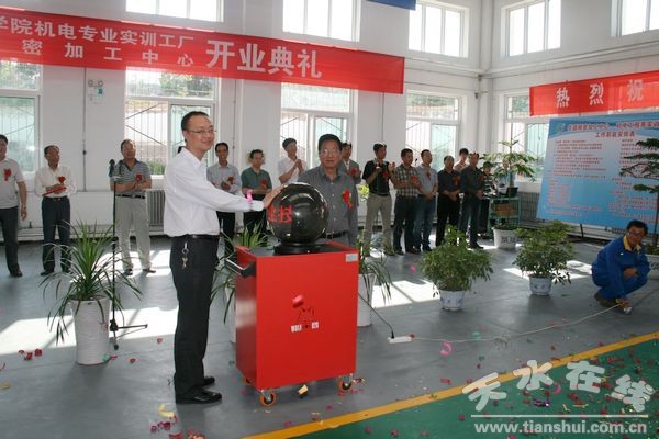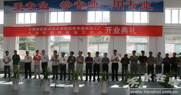 6月1日,甘肅林業(yè)職業(yè)技術(shù)學(xué)院舉辦機(jī)電專業(yè)實(shí)訓(xùn)工廠(天水華圓精密加工中心)開業(yè)慶典。學(xué)院領(lǐng)導(dǎo)朱勇虎、蘆維忠、高云峰、姚德生、鞏文、冉福祥、程國保、王存孝,華圓集團(tuán)總顧問任國元、總經(jīng)理段永鋼出席慶典儀式,參加開業(yè)儀式的還有華圓科技公司辦公室主任彭曉梅、華圓藝術(shù)學(xué)校校長張華新、技工學(xué)校校長王永峰、機(jī)電專業(yè)實(shí)訓(xùn)工廠廠長聶衛(wèi)紅,中國電信麥積公司總經(jīng)理馮戰(zhàn)川,天水羲通駕校校長汝新民、教學(xué)主任焦陽,學(xué)院辦公室、審計(jì)處、教務(wù)處、招生就業(yè)處、學(xué)生處、院團(tuán)委及各系負(fù)責(zé)人。開業(yè)典禮由機(jī)電工程系主任賈昌麟主持。