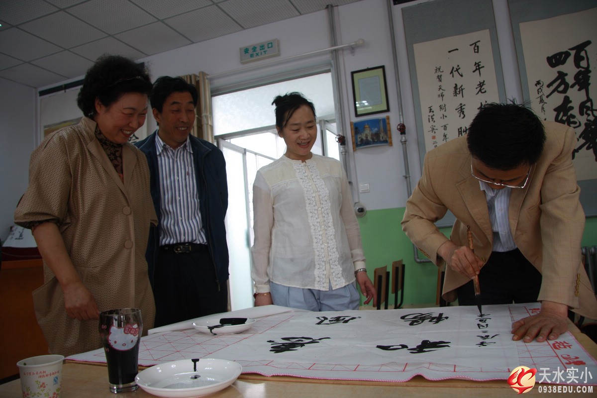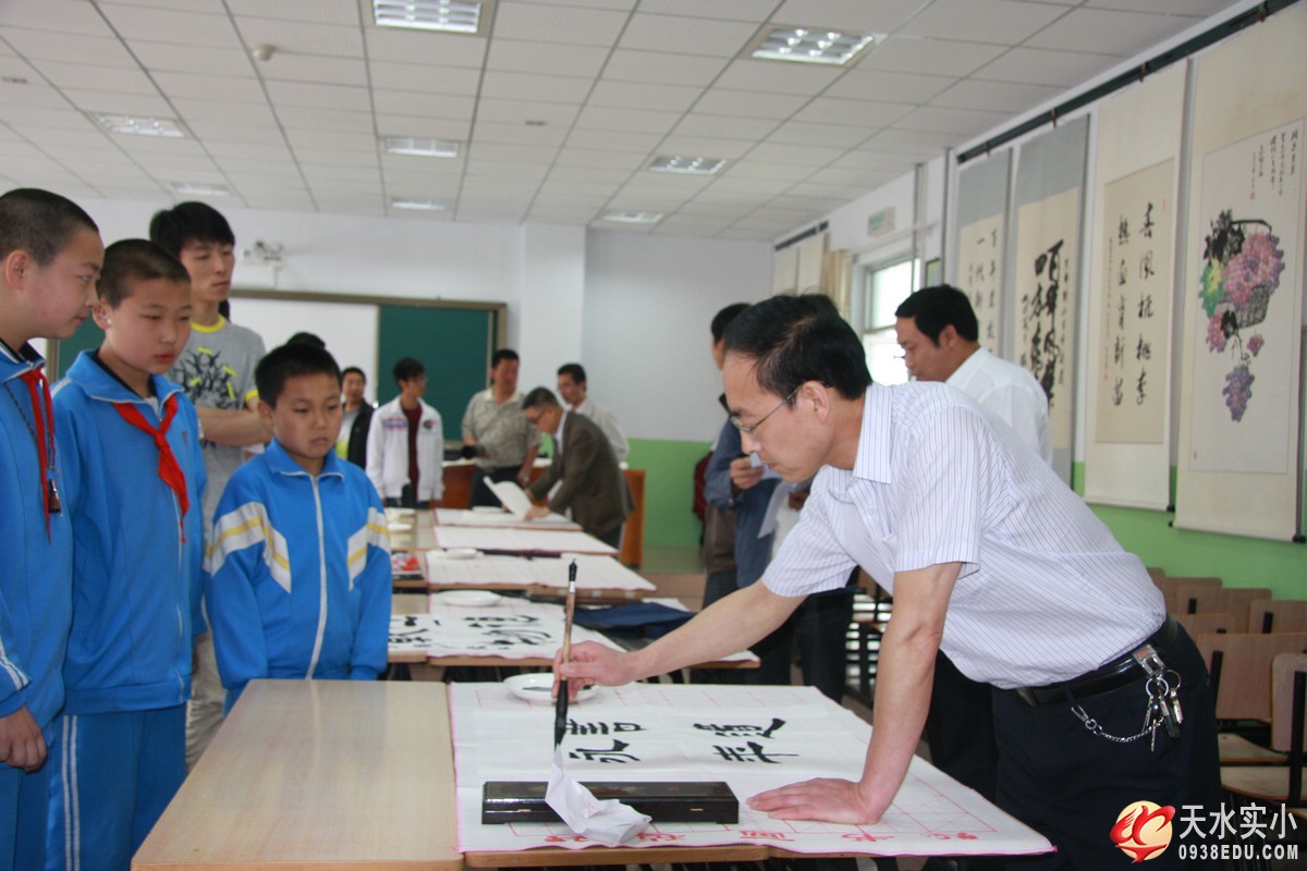 (書(shū)法家對(duì)天水實(shí)驗(yàn)小學(xué)的師生進(jìn)行臨帖輔導(dǎo)和書(shū)法寫作示范)