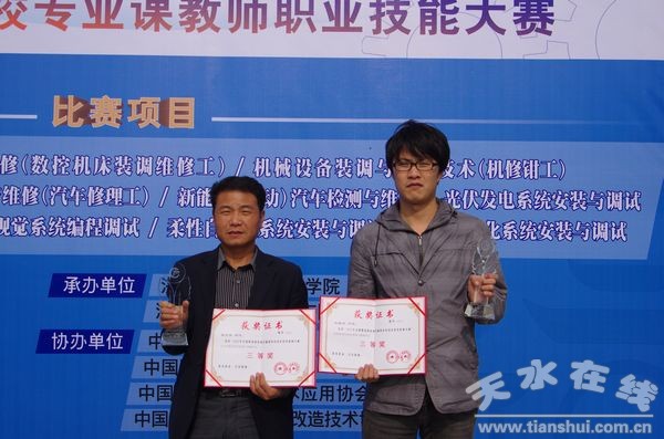 11月11日,2012年全國職業(yè)院,F(xiàn)代制造及自動化技術(shù)教師大賽在浙江機電職業(yè)技術(shù)學院順利閉幕,甘肅機電職業(yè)技術(shù)學院教師容康明、曹宏偉獲得“數(shù)控銑床裝調(diào)與維修(高職組)”三等獎。