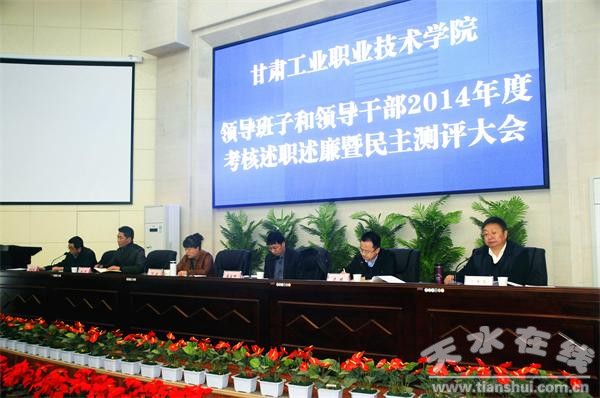 3月11日上午,以甘肅省委組織部干部三處副處長鄧蔚同志為組長的考核組蒞臨甘肅工業(yè)職業(yè)技術(shù)學(xué)院,對該校領(lǐng)導(dǎo)班子和領(lǐng)導(dǎo)干部2014年度工作業(yè)績進(jìn)行考核?己私M成員包括甘肅省教育廳高等教育處副處長姜言卿、省委宣傳部機(jī)關(guān)黨委干部陳平、省科技廳成果處干部康鵬。該校校、院兩級領(lǐng)導(dǎo)班子成員、副處級領(lǐng)導(dǎo)干部和職能部門副職、各專業(yè)主任、副高職稱及以上專業(yè)技術(shù)人員參加。