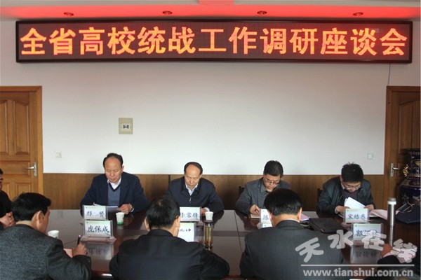 3月15日,省委統(tǒng)戰(zhàn)部副部長、甘肅社會主義學(xué)院黨組書記陳元龍、省高校工委黨建處處長李常鋒、省委統(tǒng)戰(zhàn)部四處副處長宋皓東、天水市委統(tǒng)戰(zhàn)部副部長邢赟一行4人到甘肅林職學(xué)院進(jìn)行調(diào)研。該院黨委書記高云峰、院長陳逸平、副院長虎保成、黨委統(tǒng)戰(zhàn)部部長郭懷林以及民主黨派代表、少數(shù)民族師生代表、黨外知識分子聯(lián)誼會代表等參加了調(diào)研座談會。會議由陳逸平主持。