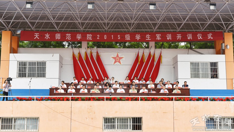 7月9日上午,天水師范學(xué)院2015級學(xué)生軍訓(xùn)開訓(xùn)儀式在塑膠田徑場舉行。96363部隊(duì)有關(guān)領(lǐng)導(dǎo)、天水師范學(xué)院黨委書記馬建東、紀(jì)委書記李淳出席開訓(xùn)儀式,開訓(xùn)儀式由副校長汪聚應(yīng)主持。