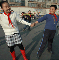 “找啊找啊找朋友,找到一個(gè)好朋友,敬個(gè)禮、握握手……”在熟悉的歌聲中,男孩和女孩互相敬禮,女孩微微一笑,伸出手和男孩起舞。昨日,蘭州實(shí)驗(yàn)小學(xué)的學(xué)生們快快樂(lè)樂(lè)跳起全國(guó)第一套校園集體舞。據(jù)悉,該校是我省首所開(kāi)跳集體舞的學(xué)校。
