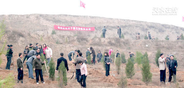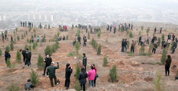 3月14日,麥積區(qū)廣大機(jī)關(guān)干部積極開展全民義務(wù)植樹活動(dòng)。當(dāng)天,在區(qū)四大組織領(lǐng)導(dǎo)親自參與下,全區(qū)58個(gè)區(qū)委、政府部門、單位的干部1300多人,在東泉南山全民義務(wù)植樹基地478畝的山坡地上義務(wù)植樹5200多棵。該區(qū)今年義務(wù)植樹和造林綠化工作也正式全面拉開帷幕。