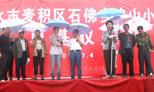 7月4日上午,麥積區(qū)石佛鄉(xiāng)曳山村小學(xué)新校址舉行奠基儀式。區(qū)委常委、副區(qū)長(zhǎng)王曉琴,區(qū)委常委、宣傳部長(zhǎng)臧志軍出席了奠基儀式。