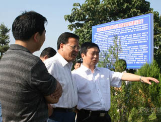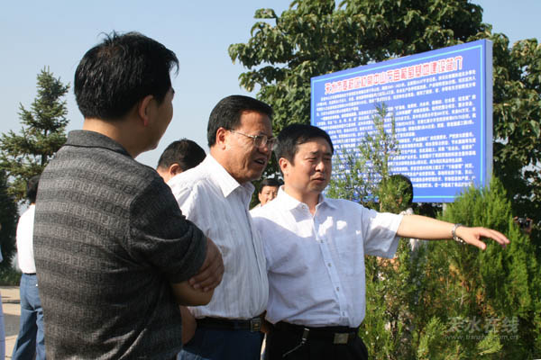 麥積區(qū)委書記蔣曉強(qiáng)向省財政廳謝德處長(中)介紹社棠中山萬畝葡萄基地建設(shè)情況