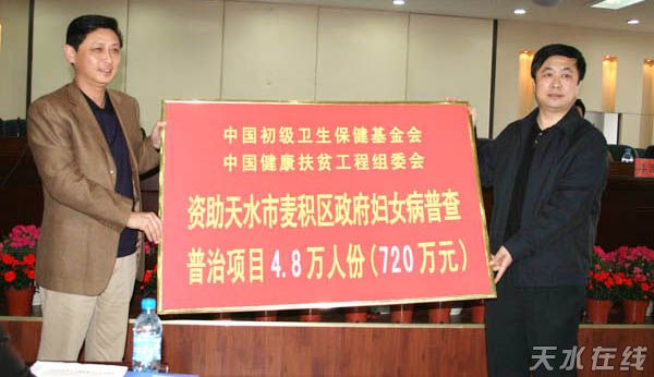 為了保障全區(qū)婦女身體健康,提高婦女的健康意識和自我保健能力,通過爭取,經(jīng)中國初級衛(wèi)生保健基金會同意,決定在麥積區(qū)實(shí)施婦女病普查普治項(xiàng)目。這是該基金會在西北的首家援助項(xiàng)目。