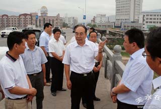 8月19日,區(qū)委書記蒲軍、區(qū)委常委宇文紅帶領(lǐng)區(qū)水利局、區(qū)防汛辦主要負(fù)責(zé)人深入渭河沿線鄉(xiāng)鎮(zhèn),就當(dāng)前麥積轄區(qū)內(nèi)渭河河道的排洪和沿線各鄉(xiāng)鎮(zhèn)防汛和地質(zhì)災(zāi)害預(yù)防工作進(jìn)行了現(xiàn)場檢查和指導(dǎo)。蒲軍強調(diào),渭河沿線各鄉(xiāng)鎮(zhèn)要以對全區(qū)人民群眾生命財產(chǎn)安全高度負(fù)責(zé)的態(tài)度,帶著對全區(qū)60萬人民的深厚感情和責(zé)任,全力以赴,沉著應(yīng)對,積極采取各種扎實有效措施,全力確保渭河沿線排洪順暢、安全。