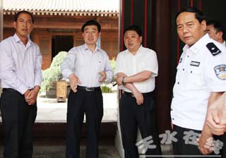 為了進(jìn)一步扎實(shí)推進(jìn)2012年(壬辰)卦臺(tái)山民間祭祀人文始祖伏羲典禮籌備工作,6月12日,麥積區(qū)委副書記、區(qū)長(zhǎng)何東帶領(lǐng)區(qū)政府辦、旅游、運(yùn)管、衛(wèi)生、公安、交警、安監(jiān)等部門負(fù)責(zé)人深入到中灘、渭南兩鎮(zhèn),重點(diǎn)就卦臺(tái)山景區(qū)環(huán)境營(yíng)造、沿線衛(wèi)生集中整治、綠化美化、宣傳欄設(shè)置、交通疏導(dǎo)及社會(huì)治安等工作進(jìn)行集中督查,并就下一階段工作作出明確指示和要求。