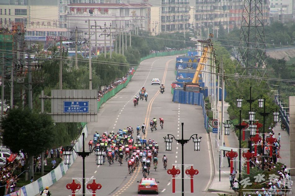 7月27日上午,第十五屆“環(huán)湖賽”天平公路賽發(fā)車儀式在麥積區(qū)舉行。圖為車隊經(jīng)過麥積區(qū)馬跑泉大橋。