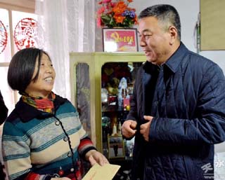 高志強(qiáng)首先來到大柳樹村低保戶張全生家中,詳細(xì)詢問了他的身體和生活狀況。通過交談,了解到張全生早年患高血壓,導(dǎo)致中風(fēng),現(xiàn)與80多歲的母親一起生活,生活很困難,高志強(qiáng)鼓勵(lì)張全生一家要樹立戰(zhàn)勝困難的決心和勇氣,爭(zhēng)取早日脫貧致富。