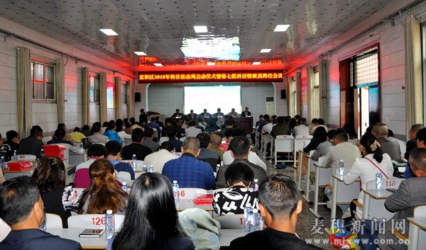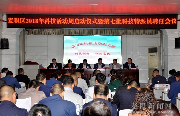 5月19日上午,天水市麥積區(qū)2018年科技活動(dòng)周啟動(dòng)儀式暨第七批科技特派員聘任會(huì)議在區(qū)委黨校舉行。會(huì)議由區(qū)人大副主任竇順良主持,副區(qū)長(zhǎng)陳兆亭、區(qū)政協(xié)副主席胡桂琳及區(qū)委宣傳部、各鎮(zhèn)、街道辦事處,科教興區(qū)成員單負(fù)責(zé)人,科技特派員代表,優(yōu)秀農(nóng)村鄉(xiāng)土人才,企業(yè)及合作社代表共計(jì)150人參加了大會(huì)。