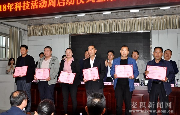 會(huì)議宣讀了《關(guān)于舉辦2018年麥積區(qū)科技活動(dòng)周的通知》《天水市麥積區(qū)人民政府關(guān)于聘任安繼宗等220名通知為第七批科技特派員的通知》。對(duì)新聘任的安繼宗等220名科技特派員頒發(fā)了聘任證書;為獲得2017年度優(yōu)秀農(nóng)村鄉(xiāng)土人才的郭灶煥等10人頒發(fā)了榮譽(yù)證書;區(qū)果業(yè)局、元龍鎮(zhèn)政府、科技特派員代表裴宏洲分別作了表態(tài)發(fā)言。