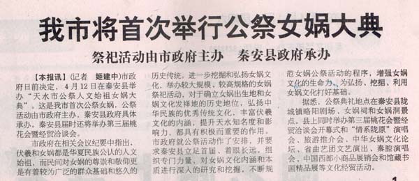 祭祀活動(dòng)由市政府主辦 秦安縣政府承辦