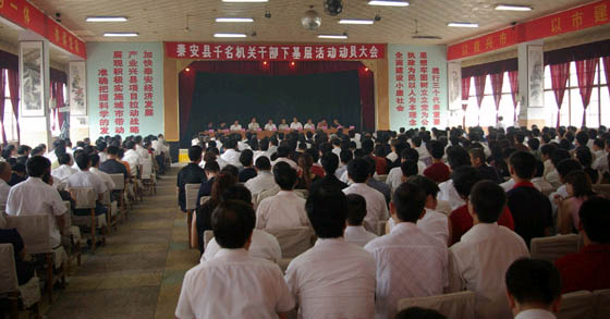 從8月7日起,秦安縣四大組織聯(lián)系鄉(xiāng)的33名縣級(jí)領(lǐng)導(dǎo)干部,帶領(lǐng)從縣直部門(mén)和各鄉(xiāng)鎮(zhèn)抽調(diào)的1116名機(jī)關(guān)干部,組成工作隊(duì)分赴全縣17個(gè)鄉(xiāng)鎮(zhèn)的515個(gè)村,開(kāi)展為期一月的以“圍繞新農(nóng)村建設(shè),開(kāi)展調(diào)查摸底、宣傳發(fā)動(dòng)、發(fā)現(xiàn)問(wèn)題、解決矛盾,整體推進(jìn)各項(xiàng)工作”為主題的千名機(jī)關(guān)干部下基層活動(dòng)。