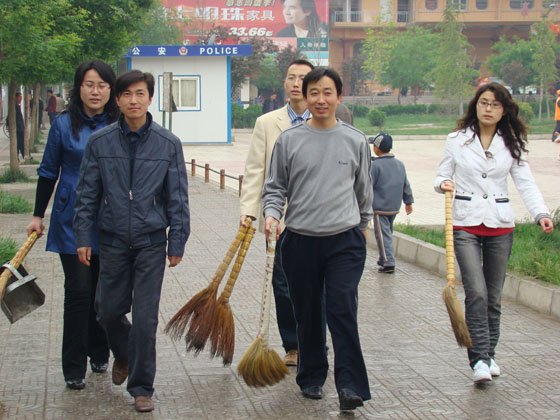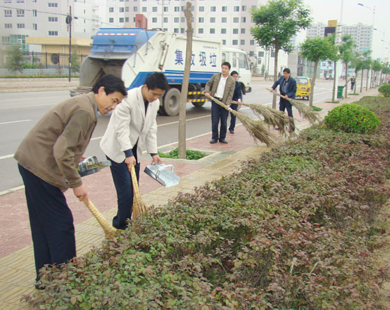 法院、檢察院工作人員打掃街道衛(wèi)生