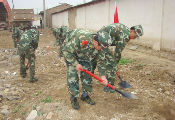 駐縣武警部隊(duì)官兵清理建筑垃圾