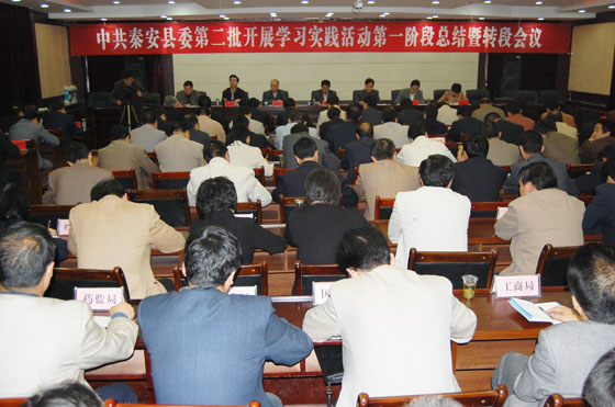 4月30日,秦安縣委第二批學(xué)習(xí)實(shí)踐活動第一階段總結(jié)暨轉(zhuǎn)段會議在縣行政中心北三樓會議室召開。縣委副書記、縣長王東紅主持會議?h四大組織在家黨員領(lǐng)導(dǎo)干部,縣法檢兩院黨組書記,縣委學(xué)習(xí)實(shí)踐活動領(lǐng)導(dǎo)小組成員,縣委各指導(dǎo)檢查組正副組長,縣直各部門、駐秦各單位黨委(組)、總支和部分支部的主要負(fù)責(zé)人,參加第三批學(xué)習(xí)實(shí)踐活動試點(diǎn)單位的黨組織主要負(fù)責(zé)人和縣委派駐試點(diǎn)聯(lián)絡(luò)員,縣委學(xué)習(xí)實(shí)踐活動領(lǐng)導(dǎo)小組辦公室有關(guān)人員,共120多人參加了會議。