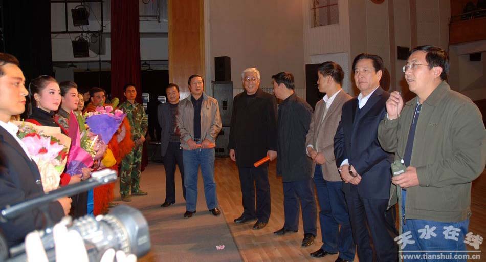 (天水市委常委、宣傳部長(zhǎng)王光慶,省政府勞務(wù)辦主任王百平等觀看演出并接見(jiàn)全體演職人員)