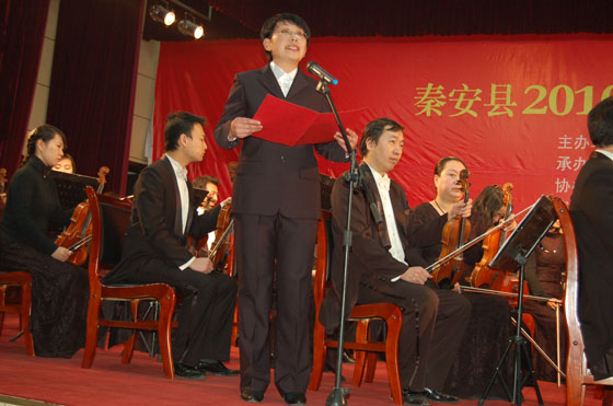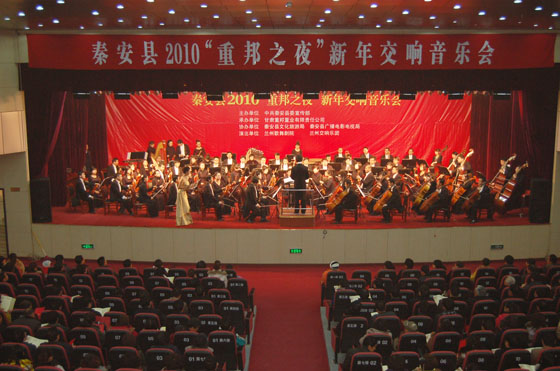 12月29日,由秦安縣委宣傳部主辦,甘肅重邦置業(yè)有限責任公司承辦,縣文化旅游局、縣廣播電影電視局協(xié)辦,蘭州歌舞劇院、蘭州交響樂團聯(lián)合演出的秦安2010“重邦之夜”新年交響音樂會在行政中心禮堂舉行。