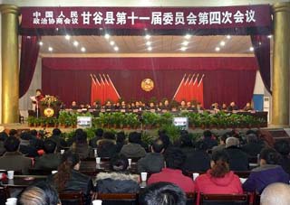 萬眾一心謀發(fā)展,同心同德促和諧。2010年1月10日,縣行政辦公中心二樓禮堂燈光璀璨、鮮花吐艷,在十面紅旗和鮮花簇?fù)硐碌闹袊?guó)人民政協(xié)協(xié)商會(huì)議會(huì)徽顯得格外引人注目。上午9時(shí),政協(xié)秦安縣第十一屆委員會(huì)第四次會(huì)議在雄壯宏亮的國(guó)歌聲中隆重開幕。