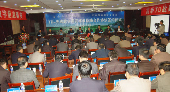 縣委書記陳天雄在講話中強調(diào),秦安縣委、縣政府與天水市移動公司積極協(xié)商,簽訂實施《無線數(shù)字秦安建設戰(zhàn)略合作框架協(xié)議》,對于進一步改善我縣通信基礎設施條件、推進信息化進程、提高群眾生活質(zhì)量、帶動相關產(chǎn)業(yè)發(fā)展必將起到積極地推動作用。認真落實合作協(xié)議,既是今后一個時期中國移動天水分公司的主要任務,也是全縣各級政府、各部門工作的一項重要內(nèi)容。衷心希望中國移動天水分公司一如既往地關心秦安發(fā)展,繼續(xù)對我縣信息化建設給予傾斜支持,加快3G網(wǎng)絡建設,提高綜合通信保障能力,促進全縣經(jīng)濟社會發(fā)展;進一步強化服務意識,積極拓展服務領域,改進服務方式,提高服務質(zhì)量,努力滿足廣大人民群眾通信需求。各鄉(xiāng)鎮(zhèn)、各部門要高度重視中國移動3G網(wǎng)絡建設,切實加強聯(lián)系溝通,不斷改進工作作風,對移動網(wǎng)絡建設要特事特辦、簡化手續(xù)、提高效率,切實幫助解決“無線數(shù)字秦安”建設過程中遇到的困難問題,為推進TD網(wǎng)絡建設提供強有力地組織保障?h內(nèi)各新聞媒體要大力宣傳黨和國家關于促進通信事業(yè)發(fā)展的一系列重大決策部署,宣傳TD網(wǎng)絡建設的重要意義,宣傳“無線數(shù)字秦安”建設的主要內(nèi)容,努力形成全社會共同參與、廣大群眾積極配合TD網(wǎng)絡建設的良好輿論氛圍。