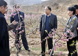 4月14日,天水市政府副市長彭鴻嘉帶領(lǐng)市農(nóng)口單位相關(guān)負責(zé)人,就近期低溫霜凍災(zāi)情深入秦安縣進行調(diào)研。在秦安縣委副書記程江芬,副縣長王金珍的陪同下,彭鴻嘉一行深入到田間地頭,詳細了解了花椒、蘋果、桃、冬小麥、露地蔬菜等作物受災(zāi)情況,并有針對性地提出了應(yīng)對策略,要求農(nóng)業(yè)部門結(jié)合本地實際,進行分類技術(shù)指導(dǎo),采取煙熏、灌水等各種有效措施加強田間管理,努力把災(zāi)害造成的損失降低到最低限度。