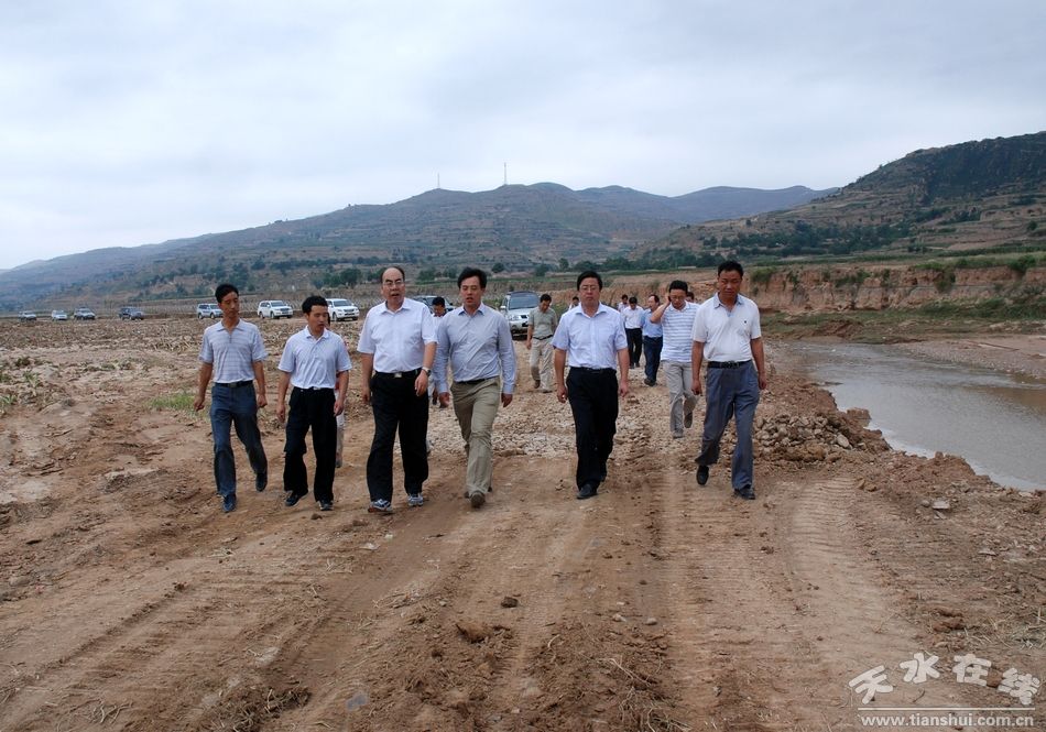 2010年8月17日,天水市委副書記、市長(zhǎng)李文卿一行,在秦安縣委書記徐健,縣委副書記、縣長(zhǎng)王東紅及縣委辦、政府辦、水務(wù)局、國(guó)土局、建設(shè)局等部門負(fù)責(zé)人的陪同下,深入葫蘆河流域葉堡段、安伏段,清水河流域五營(yíng)段等河段,檢查指導(dǎo)了秦安防汛抗洪工作。