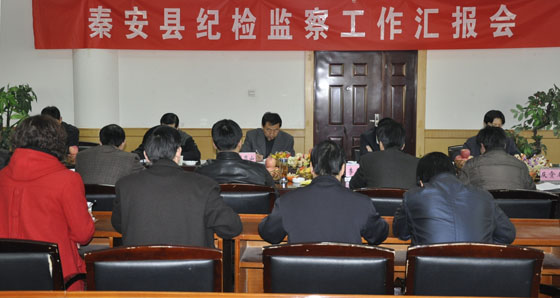 3月8日,秦安縣召開紀(jì)檢監(jiān)察工作匯報(bào)會(huì)。省委巡視組全體成員,秦安縣委書記徐健,縣委常委、紀(jì)委書記楊仁義,以及縣紀(jì)委、縣監(jiān)察局班子成員和全體干部,審計(jì)局、反貪局主要負(fù)責(zé)人參加了會(huì)議。