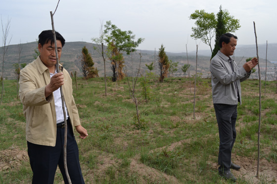 張璞銀、李尚平通過實(shí)地查看,對各重點(diǎn)區(qū)域的植樹造林成活情況逐一進(jìn)行了檢查。檢查中發(fā)現(xiàn)個別單位由于沒有及時澆水和殺蟲,部分樹苗已干枯,一些樹苗活著但仍未發(fā)芽,個別樹苗有病蟲害。