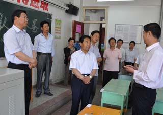 徐健指出,今年是建黨90周年, 90年來(lái),我們黨和國(guó)家發(fā)生了翻天覆地的變化,這些成績(jī)的取得離不開(kāi)先烈們的浴血奮戰(zhàn),離不開(kāi)各行各業(yè)建設(shè)者的辛勤勞動(dòng)和忘我奉獻(xiàn)。因此,同學(xué)們要從小樹(shù)立對(duì)黨和社會(huì)主義祖國(guó)的樸素情感,這個(gè)樸素情感就體現(xiàn)在平時(shí)的一言一行、一舉一動(dòng)當(dāng)中。作為少先隊(duì)員,首先要愛(ài)自己的家鄉(xiāng),愛(ài)護(hù)周圍的環(huán)境,幫助同學(xué),向雷鋒叔叔學(xué)習(xí),發(fā)揚(yáng)螺絲釘?shù)木,做到這些還遠(yuǎn)遠(yuǎn)不夠,還要努力掌握各種文化知識(shí),尤其是你們處在科學(xué)技術(shù)日新月異的今天,在座的大家將來(lái)都要做社會(huì)主義祖國(guó)的合格建設(shè)者和接班人,怎樣才能練好本領(lǐng),就是要勤學(xué)習(xí),勤動(dòng)手,善于發(fā)現(xiàn)自然規(guī)律。并囑托隨行的教體局負(fù)責(zé)人,要按照培養(yǎng)四好少年的要求,保證學(xué)生的校園體育活動(dòng)時(shí)間,讓同學(xué)們有一個(gè)健康的體魄,度過(guò)一個(gè)快快樂(lè)樂(lè)的童年。
