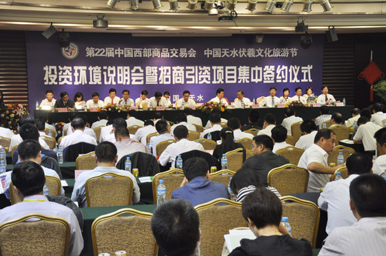 6月21日下午,第22屆中國西部商品交易會、中國天水伏羲文化旅游節(jié)投資說明會暨招商引資項(xiàng)目集中簽約儀式在天水賓館舉行,秦安縣委常委、紀(jì)委書記楊仁義及縣直有關(guān)部門負(fù)責(zé)人、客商代表參加了項(xiàng)目簽約。本次簽約儀式上,秦安縣共簽約合同項(xiàng)目8項(xiàng),總投資8.1億元,項(xiàng)目涉及新能源、文化旅游、農(nóng)業(yè)產(chǎn)業(yè)化等方面。