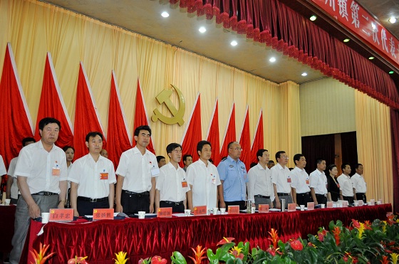 正式會(huì)議階段,當(dāng)雄壯的國歌響起時(shí),到會(huì)的219名代表全體起立,中國共產(chǎn)黨西川鎮(zhèn)第二次代表大會(huì)正式開幕。