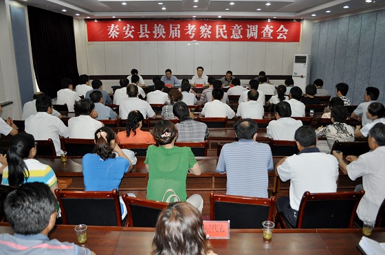 根據(jù)市委關(guān)于縣區(qū)領(lǐng)導班子換屆工作的總體部署和市委考察組的安排,8月5日,秦安縣召開換屆考察民意調(diào)查會,對現(xiàn)任黨政班子及成員和法院院長、檢察院檢察長及新提拔考察對象的工作情況及公眾形象進行民意調(diào)查。