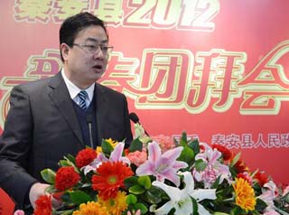 秦安縣2012年春節(jié)團(tuán)拜會(huì)在縣政府招待所隆重舉行?h四大組織全體領(lǐng)導(dǎo)和其他縣級(jí)干部,各鄉(xiāng)鎮(zhèn)黨委書(shū)記、鄉(xiāng)鎮(zhèn)長(zhǎng),縣直各部門(mén)、駐秦各單位主要分責(zé)任人,部分人大代表、政協(xié)委員、宗教人士代表,非公有制經(jīng)濟(jì)人士代表,黨外人士代表及離退休老領(lǐng)導(dǎo)、老干部代表、優(yōu)秀人才代表、勞模代表、僑屬代表歡聚一堂,共慶新春佳節(jié),共商發(fā)展大計(jì),共話(huà)美好未來(lái)。