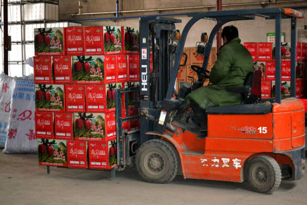 “以前在南方打工,一個月也就是兩千多塊錢,現(xiàn)在家門口果庫就業(yè),工資也差不多,還可以照顧家里!贝汗(jié)剛過,去年在浙江打工的蔡先生就被當(dāng)?shù)氐墓麕炖习濉敖亓簟,實現(xiàn)了就近就業(yè)。