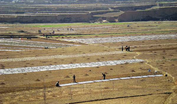 劉建剛幫村民鋪膜